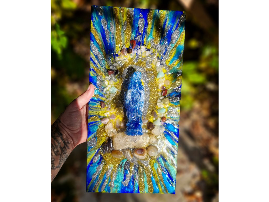 Domů VŠE ORGONITY ORGONITOVÉ OBRAZY PANENKA MARIE - velice silný, plastický, orgonitový obraz