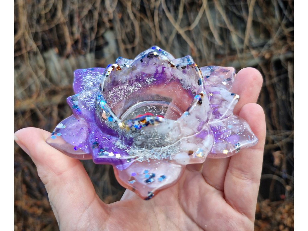 Domů VŠE ORGONITY SVÍCNY Svícen ametyst křišťál květ velký