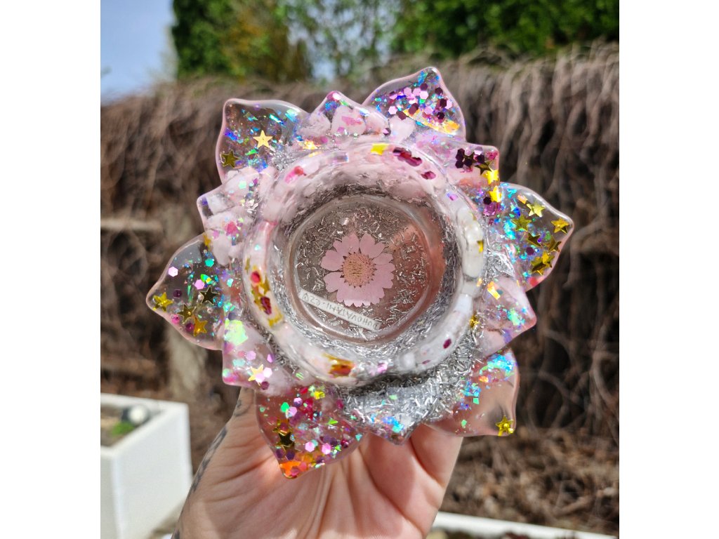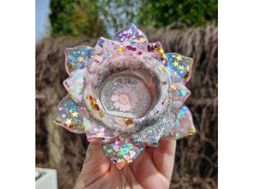 Orgonitový svícen z Ateliéru Duhové Tami.