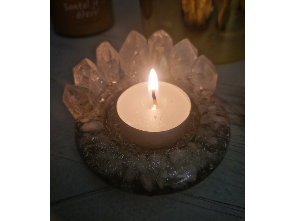 Orgonitový svícen z Ateliéru Duhové Tami.