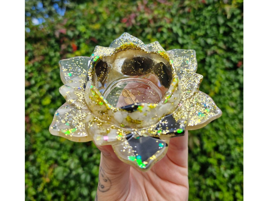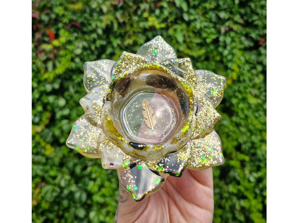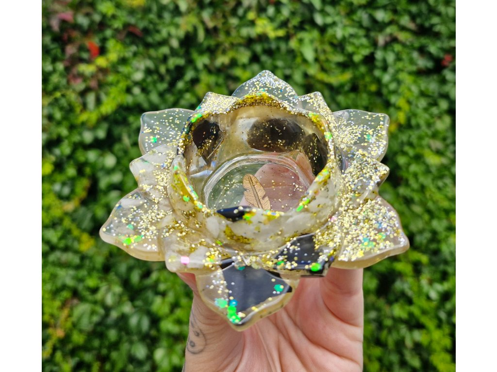 Orgonitový svícen z Ateliéru Duhové Tami.